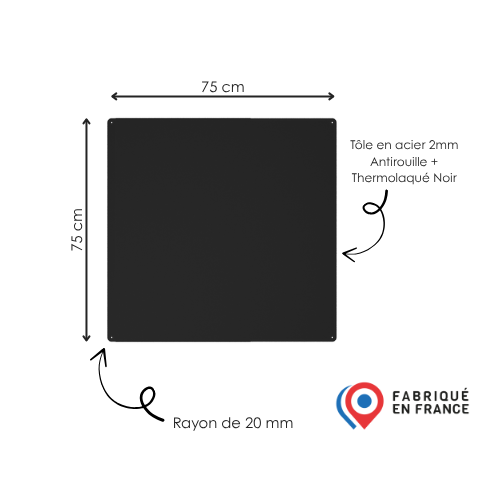 - Usage : Protection de sol contre le rayonnement thermique des poêle à bois ou granule.